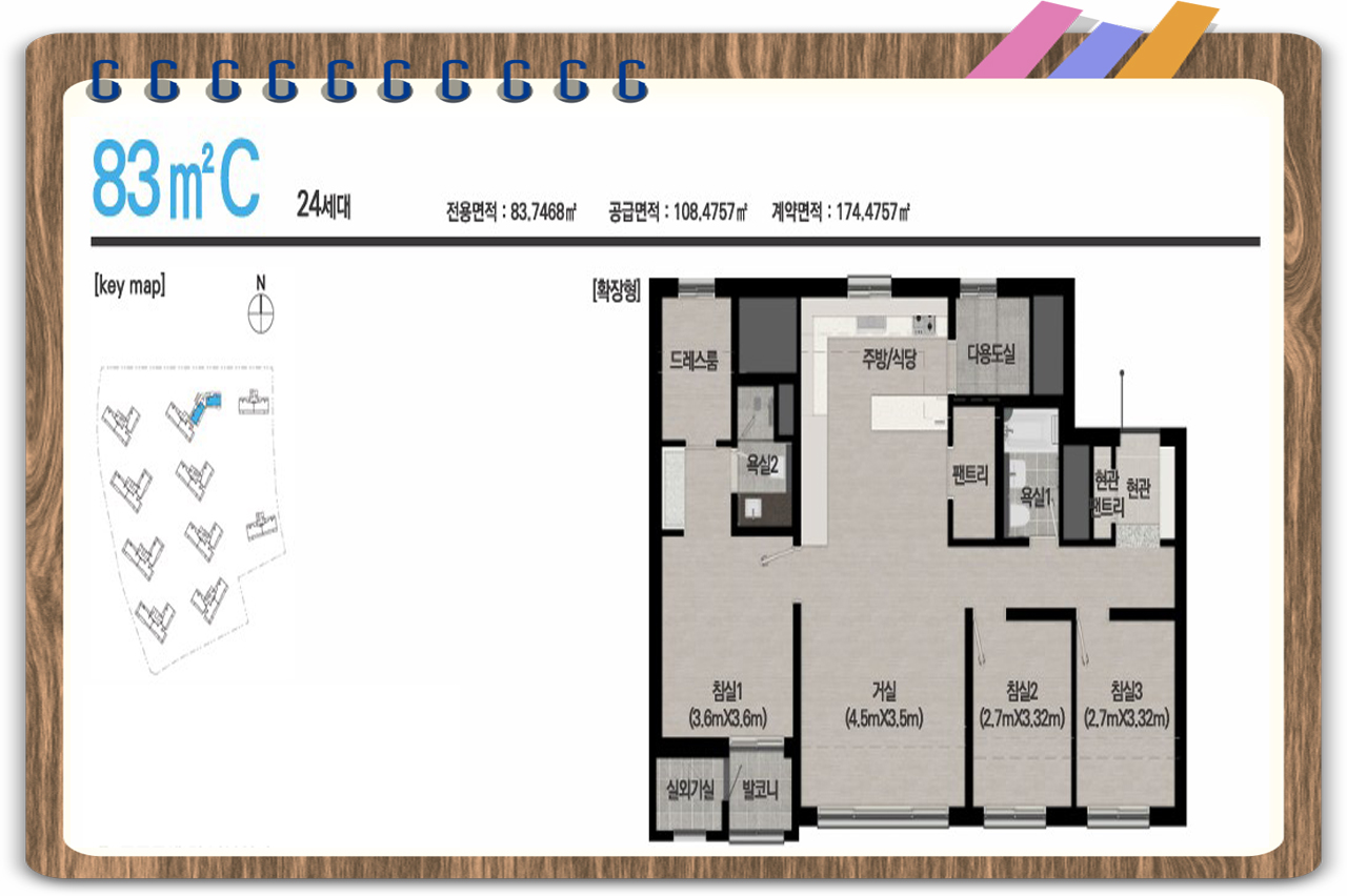 - 83㎡ (3개 타입), 93㎡ 총 2개의 평형대로 구성.